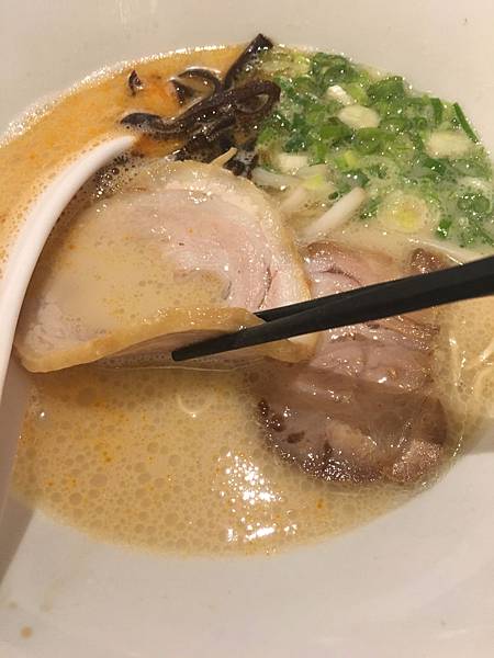 我們二個都點一樣的,拉麵我們還是習慣點豚骨,湯頭中規中矩,台灣人會喜歡的鹹度🤔