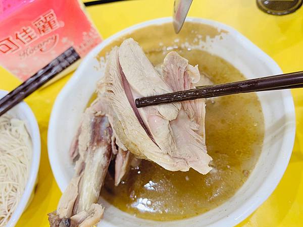 整支雞腿掛在碗上,本人比照片看來大支很多