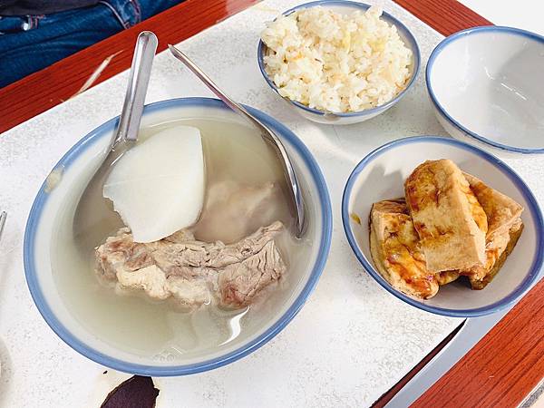 店內的價目表只有二樣:高麗菜飯和原汁排骨湯