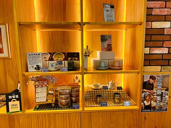 櫃枱旁擺放著印有客美多咖啡杯販售