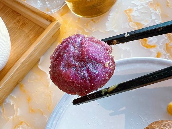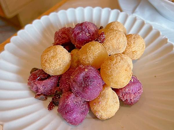 黃色的地瓜球是紫色內餡(很淡的紫)