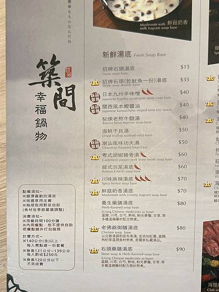 湯底和火鍋套餐是分開計價的