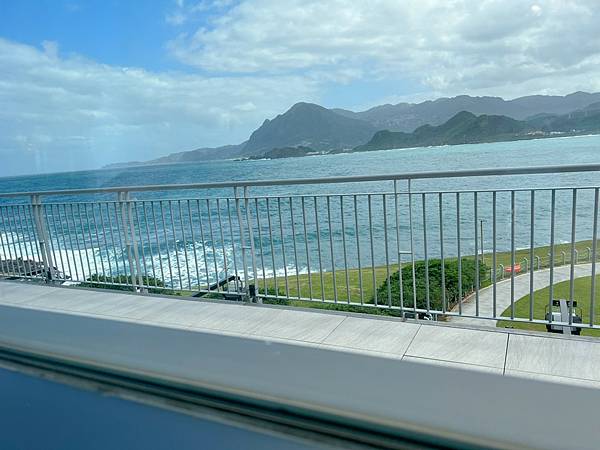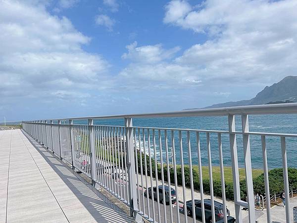 以蔚藍海面為背景的白色圍欄是很棒的拍照點📸