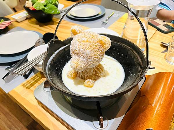 如果有需要,可以請服務人員幫忙將小熊放入湯中