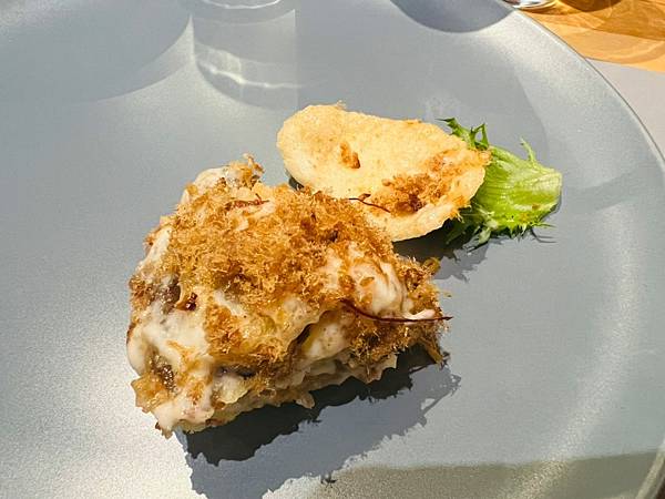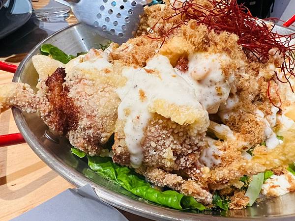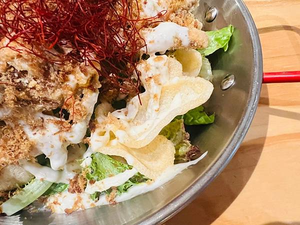 上面淋了像塔塔醬的美乃滋和撒上剛剛的魚鬆