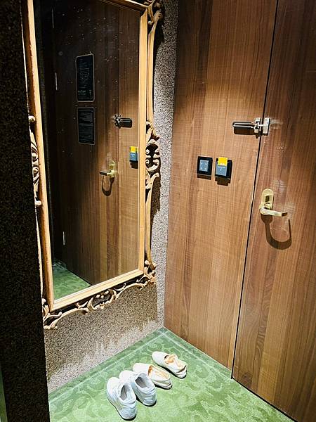 進門就有個連身鏡,可以把鞋子脫在這裡當落塵區