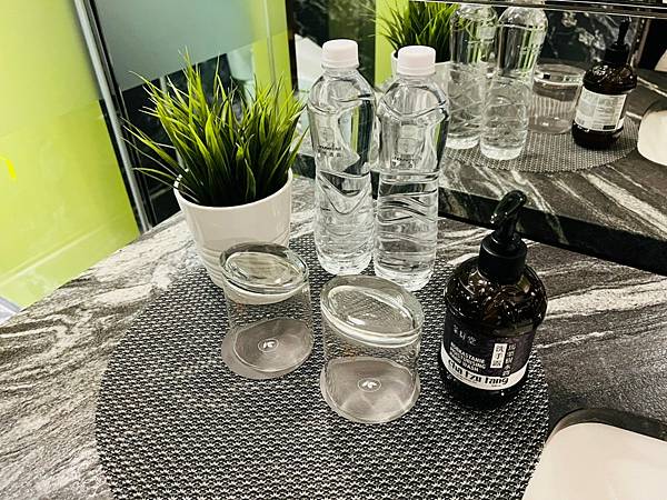 裡面有瓶裝水,洗手露也是茶籽堂的