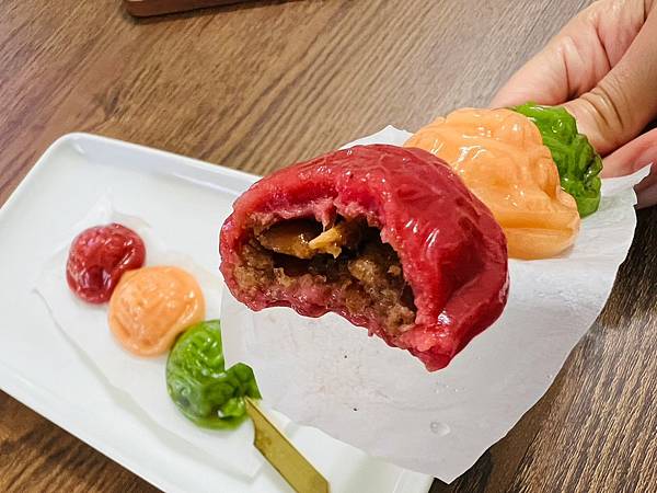 綠色的粿體是抹茶,內餡是布朗尼口味,吃起不會有衝突感