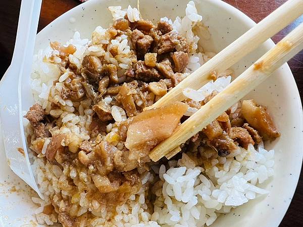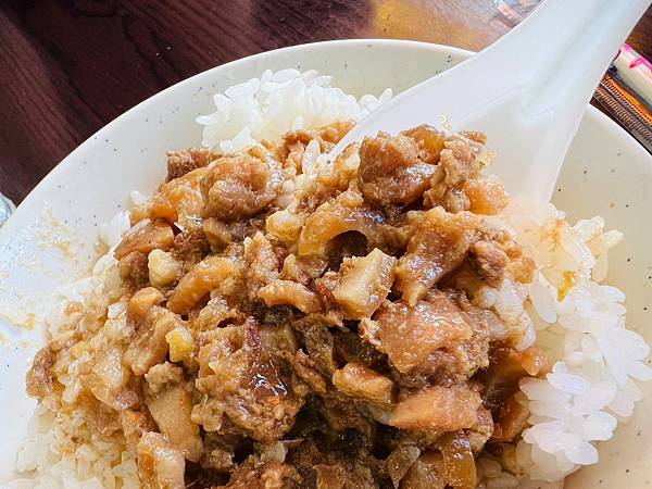 滷肉以肥肉居多,很明顯看到不少帶皮的,味道不會太死鹹