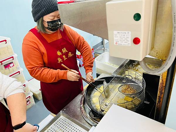 靠近一點才發現柱子後就有一個油鍋在炸豆腐