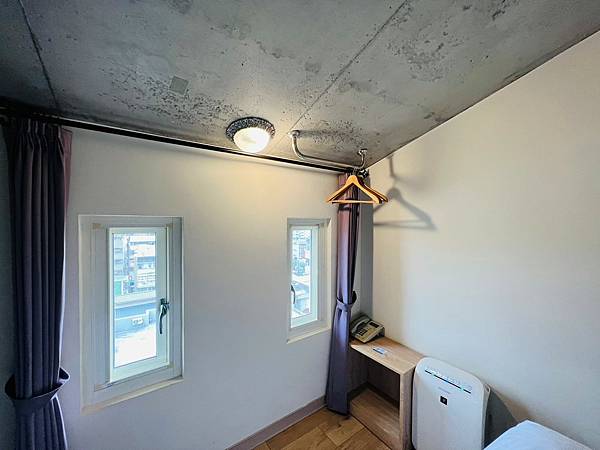 只有一邊有對外窗,這裡有一個迷你衣桿可以吊一點衣服