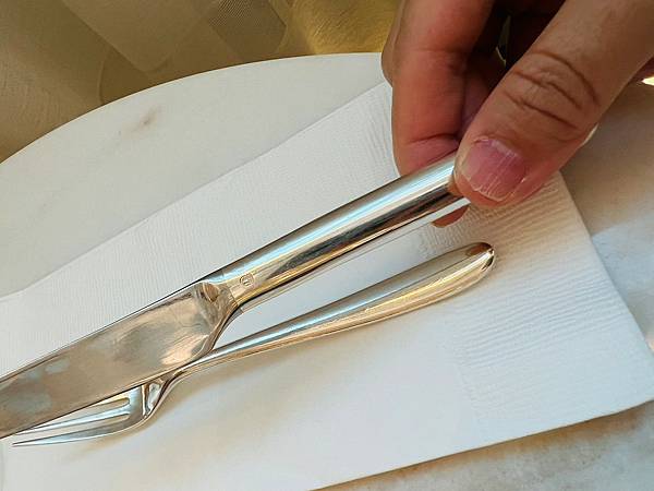 刀叉應該是銀製或鍍銀的,色澤就是跟一般餐具不同