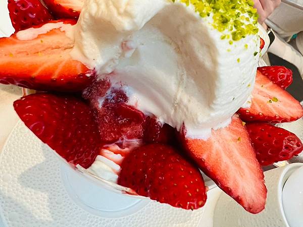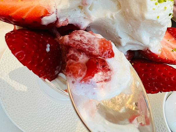 清香不甜膩的香草冰淇淋搭配有天然顆粒的果醬和新鮮香甜的草苺