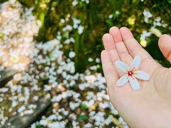 所以沒看到樹上的油桐花,只看到散落一地的花瓣
