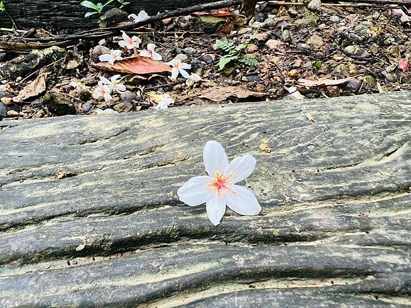 在開闊的入口就看到地上的油桐花