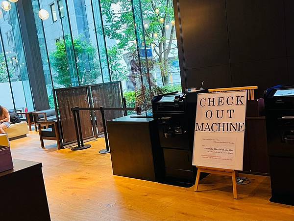 面對櫃枱的左手邊有自助退房機