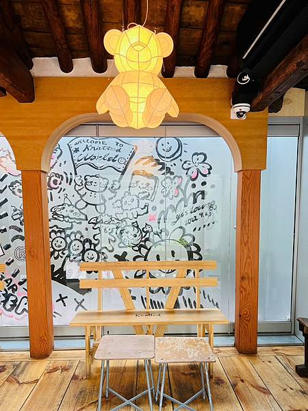 座位上方有可愛的的小熊燈飾