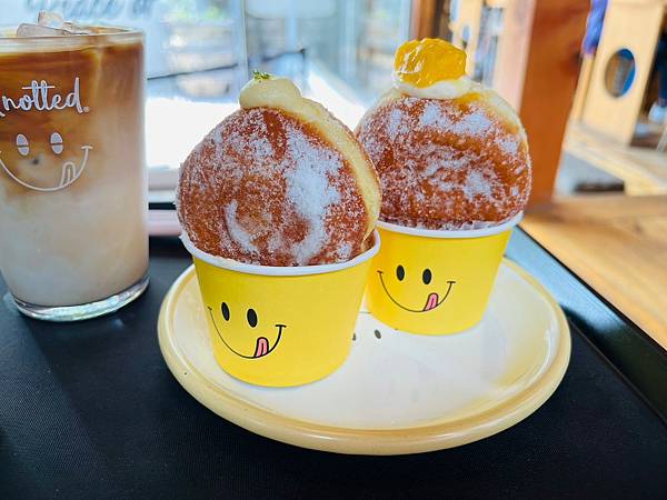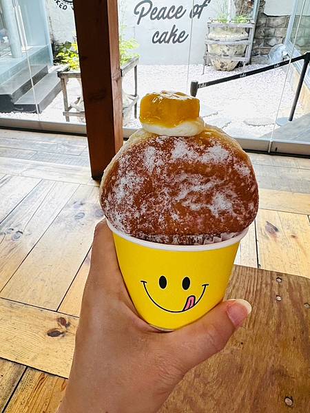 內用的甜甜圈用可愛的紙杯裝著,很有韓味(韓國人很愛用紙杯裝各種食物)