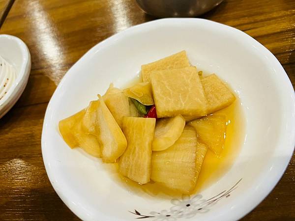 酸甜的醬醃白蘿蔔和洋蔥,和烤肉一起吃很解膩