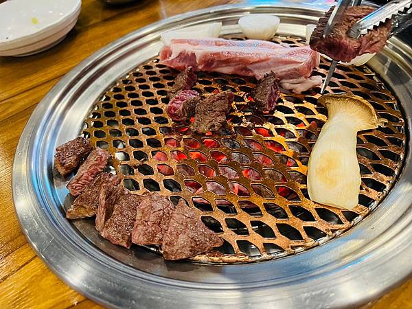 我還在恍神店員巳經把肉放在烤盤上了😆