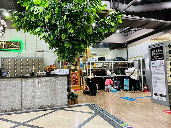 入場前要先脫鞋,鞋櫃有分男女(地上有紅線是女生的)