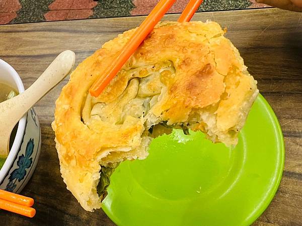 蔥油餅變得水水的,軟中帶脆,很上頭😁