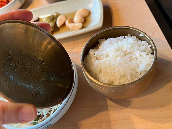 我們單點的飯,嗯~第一次在韓國看到裝不滿的白飯