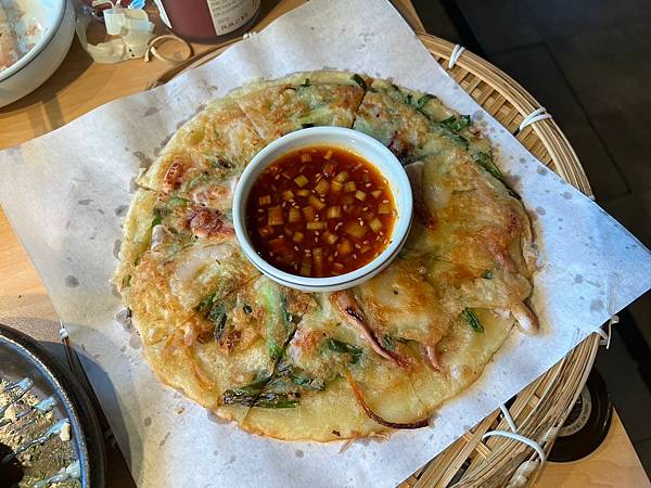 海鮮蔥餅口味上不差但少了香脆,不及我們上次在青沙浦吃的