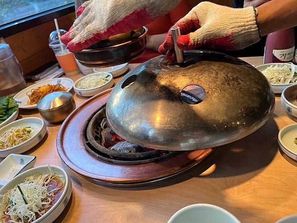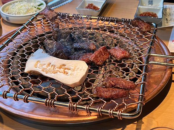 小菜醬料上完就端上烤爐,用碳火燒烤很加分
