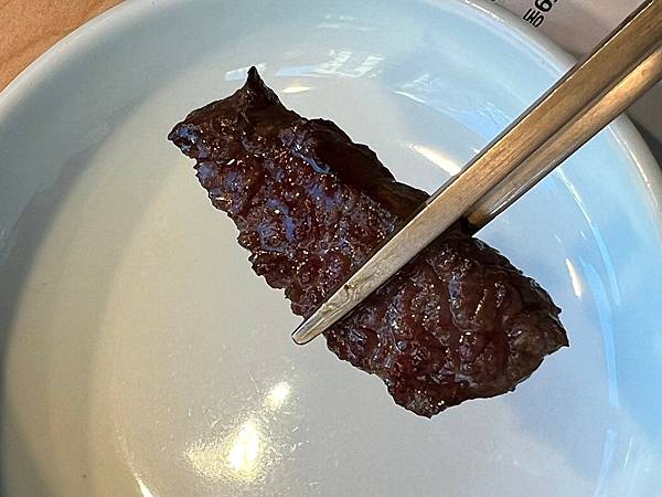 霜降吃起來比板腱更有油脂香,不過吃起來都沒有我們期待的軟嫩,口感較有嚼勁