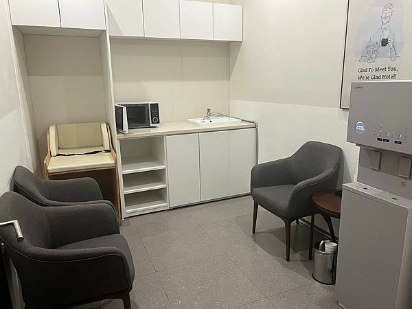 櫃枱後方的通道走進去有洗手間和育嬰室,育嬰室裡有微波爐和飲水機可以使用