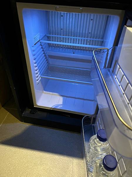 下面有個冷藏小冰箱,既使是冬天,瓶裝水也會放在冰箱裡