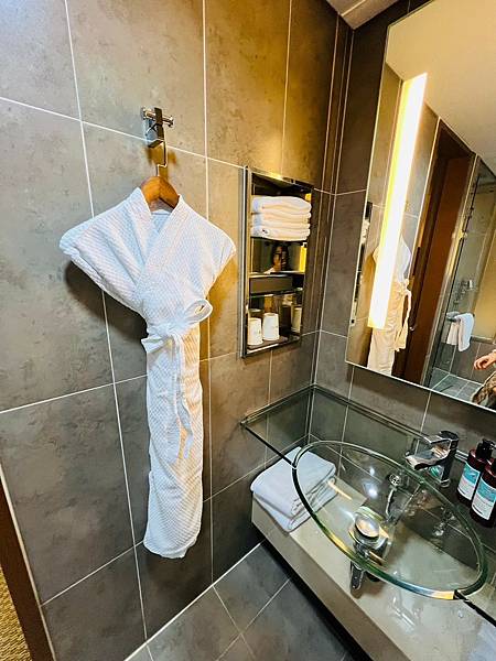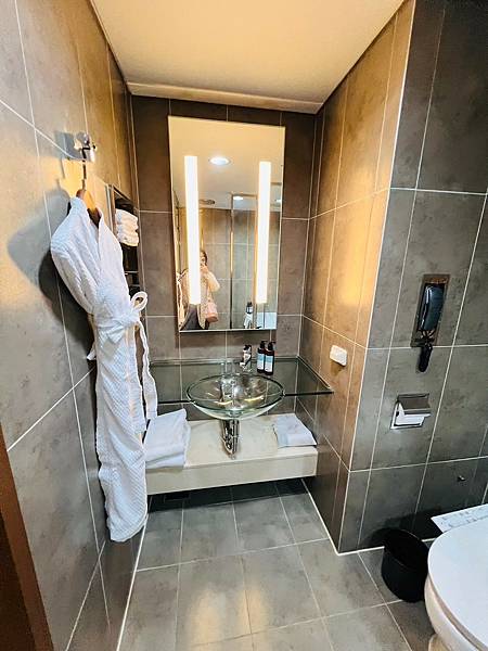 門的另一邊是浴室,洗手槽的枱面沒有很大,而且洗水時水很容易潑到旁邊