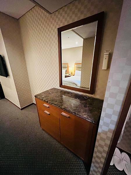 一進門就有個大衣櫃,不過下面沒有平台可以放行李,行李只能放地上