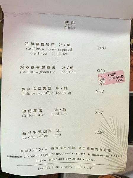 ANITA'S LIFE caf'e的飲料選擇算蠻有限的