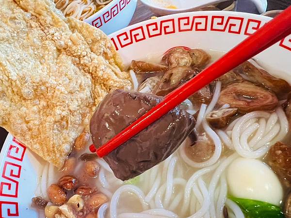 老鴨湯粉裡多了鴨血,湯汁有入味但不太柔軟