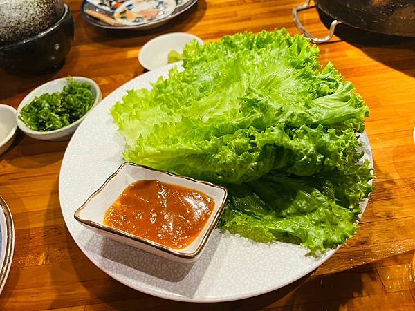 生菜很鮮脆,直接沾醬也很好吃(給的醬很像韓國的包飯醬)