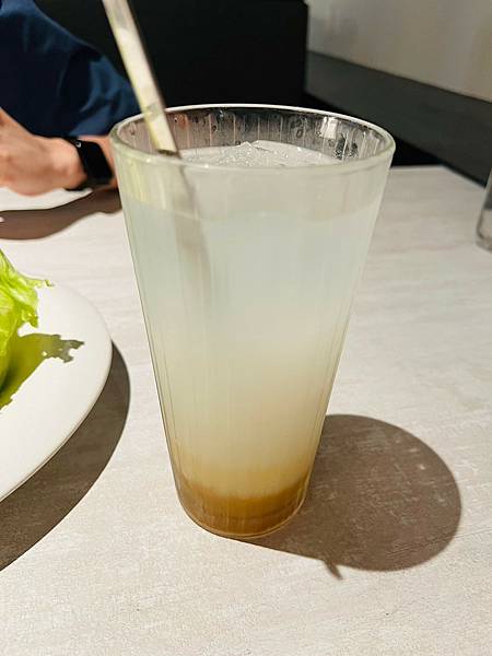 覺得是用手搖杯調製,檸檬汁和綠茶合而為一,吃肉後喝上一口,十分解膩