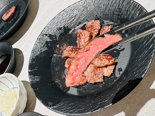 油脂不多,咀嚼時能感受單純肉的鮮味和咬勁,連不愛吃太生的老公都讚不絕口