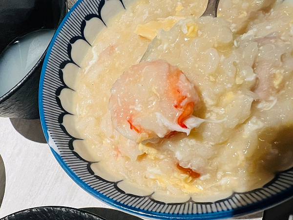 麻油味是淡淡的清香,不會過於搶戲,裡面有不少大塊又鮮的蝦子和雞肉
