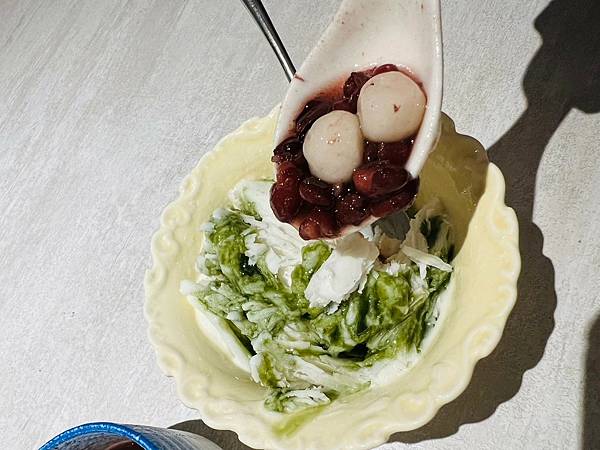 我突發奇想,把紫米紅豆和湯圓加在雪花冰裡變燒冷冰,味道也超級搭