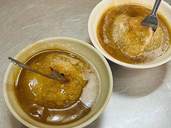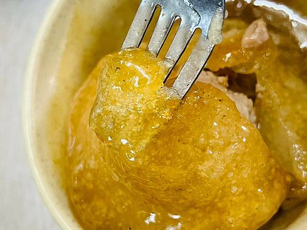 北門口的肉圓皮是外表有一層薄脆但吃起來Q彈,感覺吃到後面那層薄脆也沒有變軟太多
