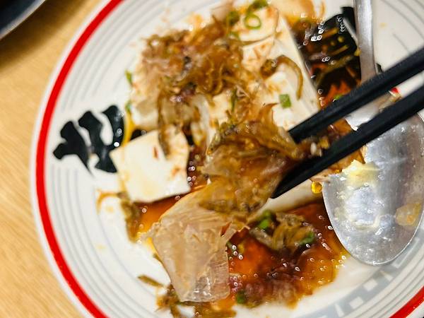 小魚乾脆甜,加上鹹甜的醬汁,和柴魚片,成為豆腐的最佳配料