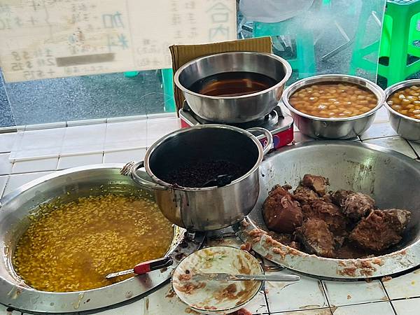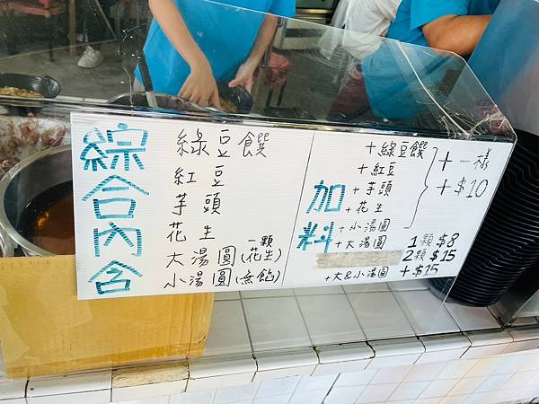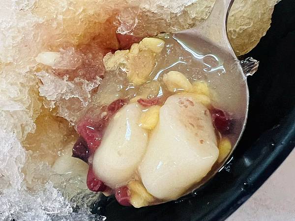 招牌的綜合冰裡面的料有綠豆饌、紅豆、芋頭、花生和大小湯圓