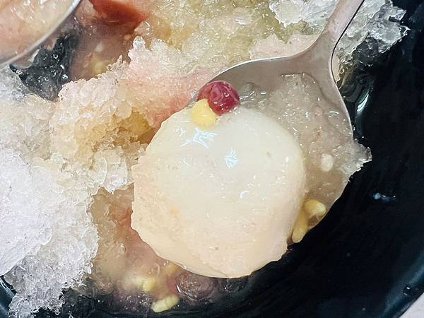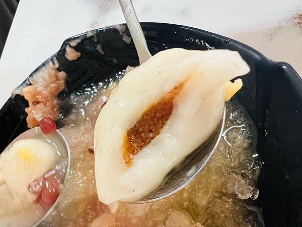 吃燒冷冰有眉角,上桌後不要拌,直接挖湯圓出來才有燒冷冰的風味