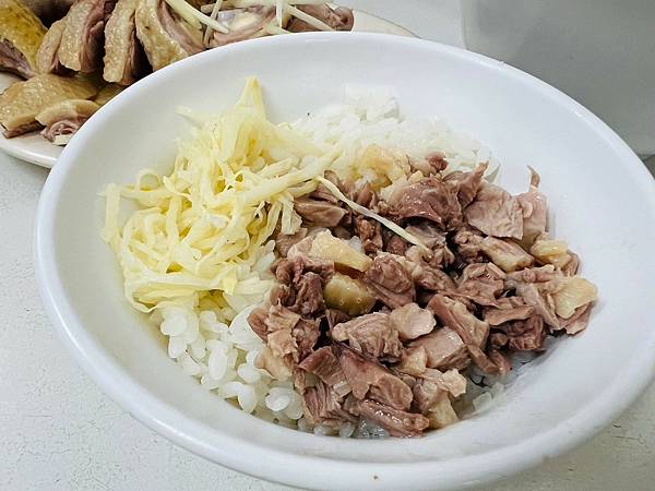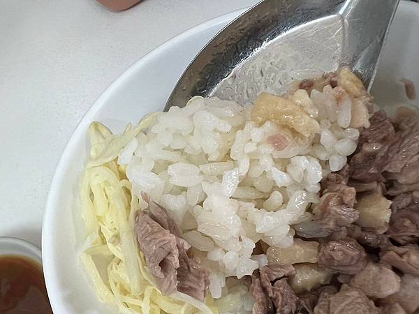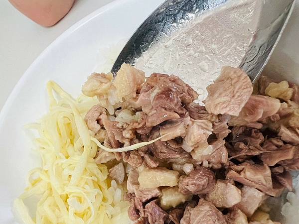 鴨肉飯裡是小碎塊的鴨肉,口感Q彈,還有些許油香的鴨皮碎