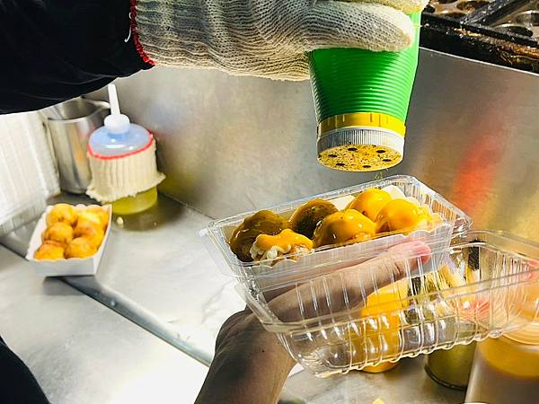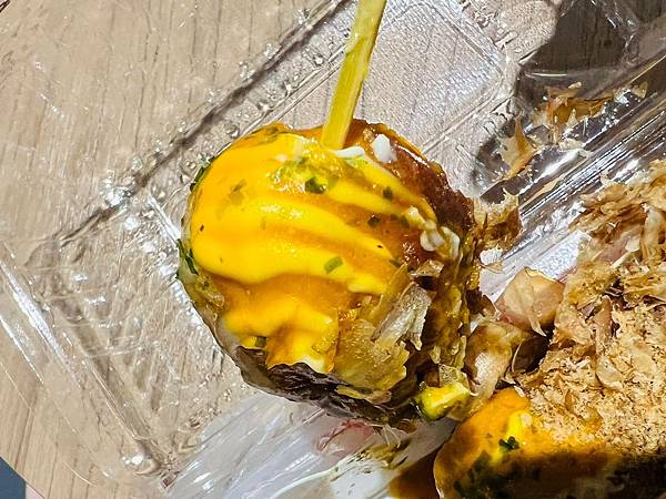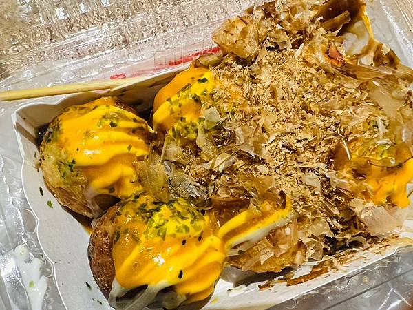 我們點的是起司口味,在章魚燒上淋了滿滿的起司醬
