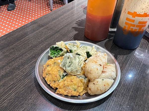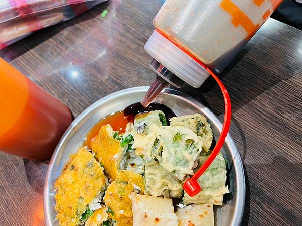 他們家的炸物本身調味比較淡,建議加桌上的蒜香醬油膏和甜辣醬,風味會更好