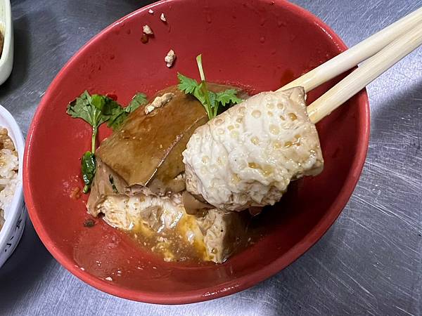 滷肉以肥肉居多,但醬汁油蔥香適度又開胃,吃起來沒有油膩感