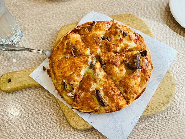 餅皮口感有Q勁,跟必勝客的一樣,邊緣有像炸過的油香,我超愛🥰